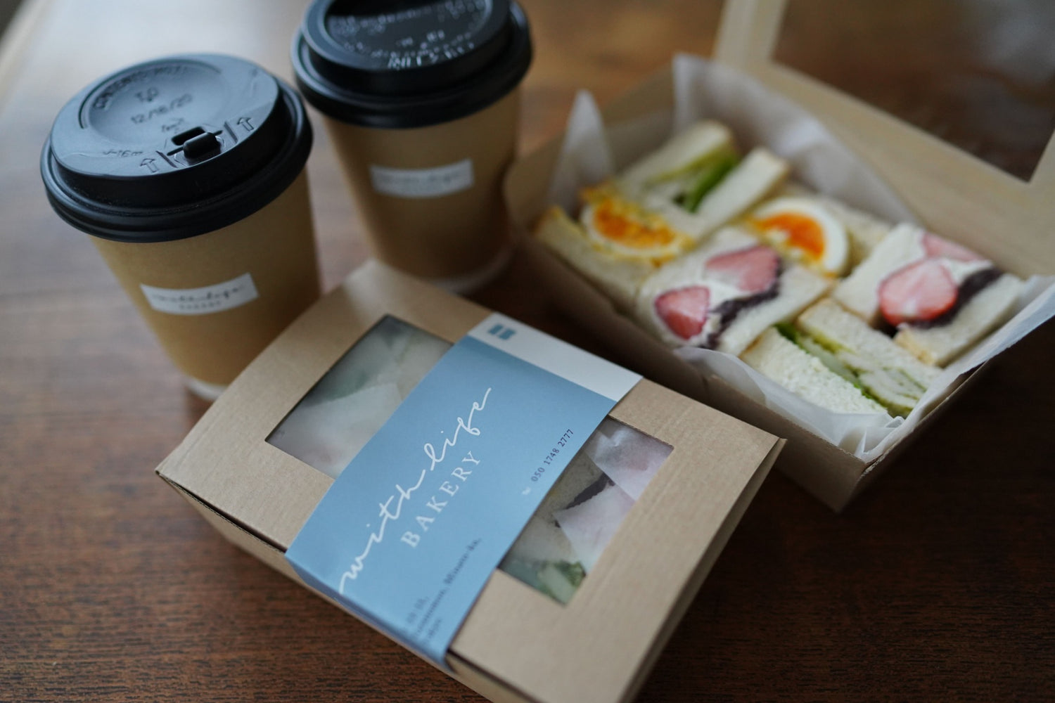 サンドイッチや焼き菓子、デリを詰め込んだ